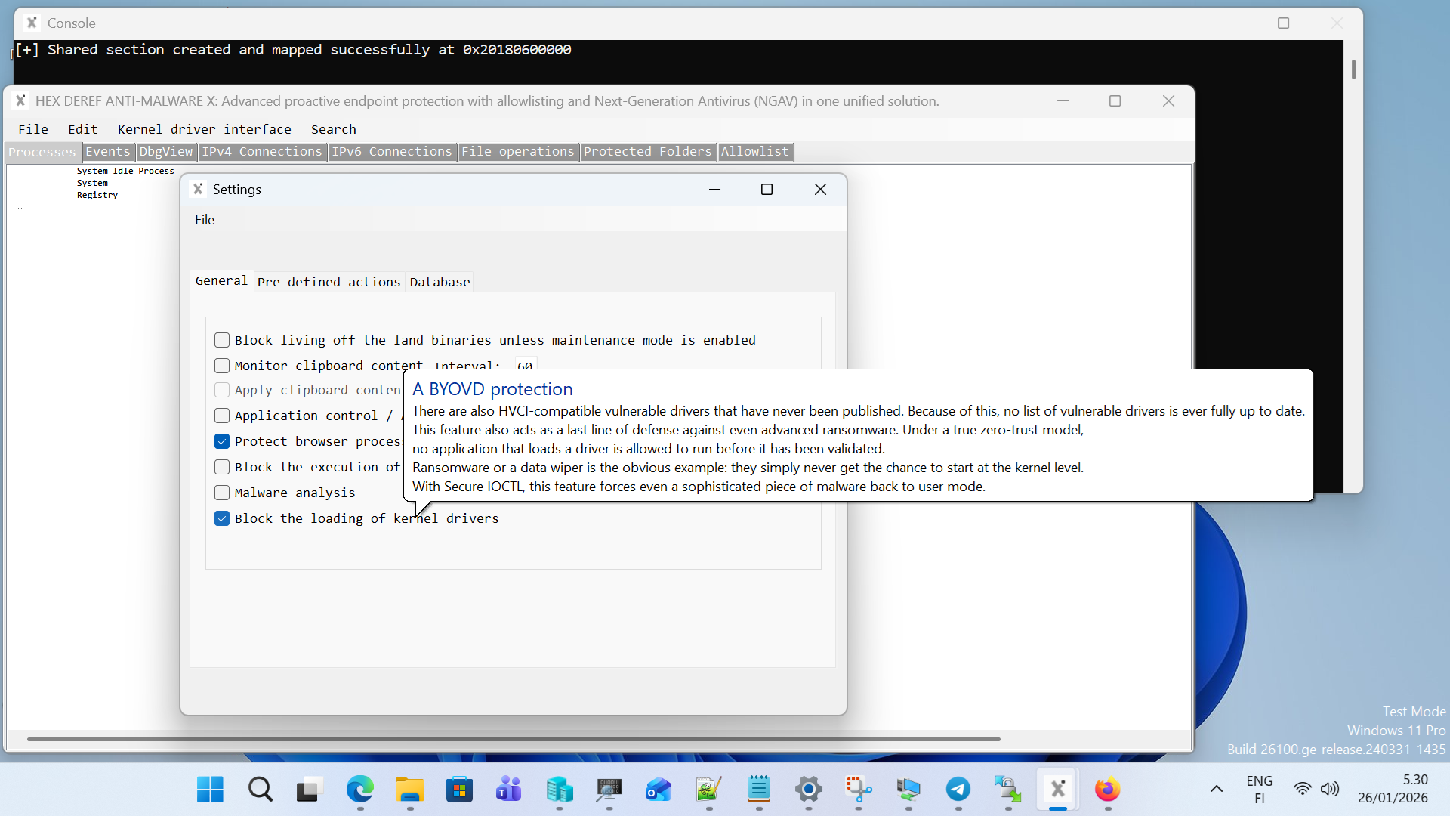 - Advanced process protection: Processes can be protected at the kernel level based on their digital signature, ensuring: Process memory cannot be read or written from user space. Protected processes are immune to code injection. By configuring the settings, browser processes can be secured in such a way that even fileless malware cannot hide within them. Most importantly, it prevents the extraction of user credentials or other sensitive information from browser memory